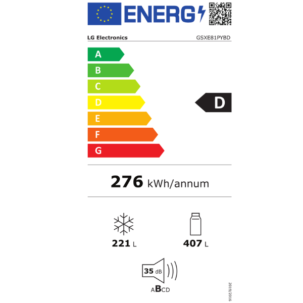 • Energieeffizienzklasse: D (EU‑Skala A–G).