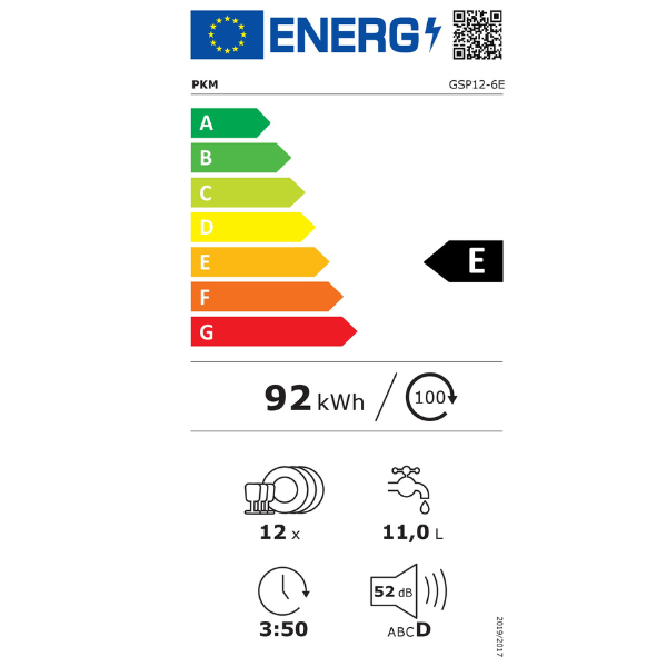 Modell: PKM GSP12-6E (Freistehender Geschirrspüler, 60 cm)
